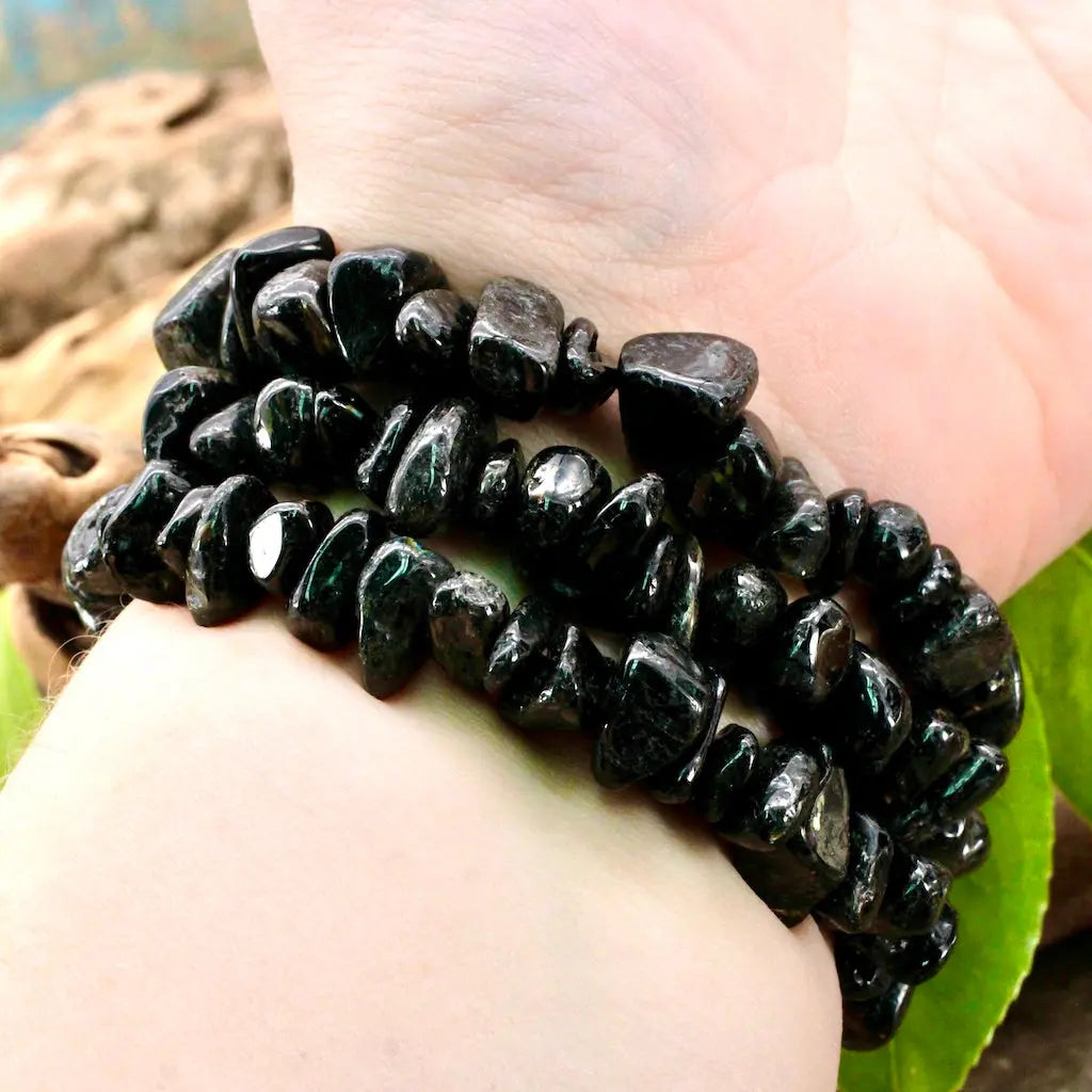 Nuummite sure is one powerhouse of a stone! And in bracelet form, you can carry that power with you everywhere. It is mostly black or very dark brown in color, but oftentimes has the most dazzling little peeks of iridescence! We love it for its aid in higher spirituality and its ability to clear the mind and body of pain. We also recommend this bracelet if you are on a journey of self-improvement or are looking to manifest balance and luck into your life.