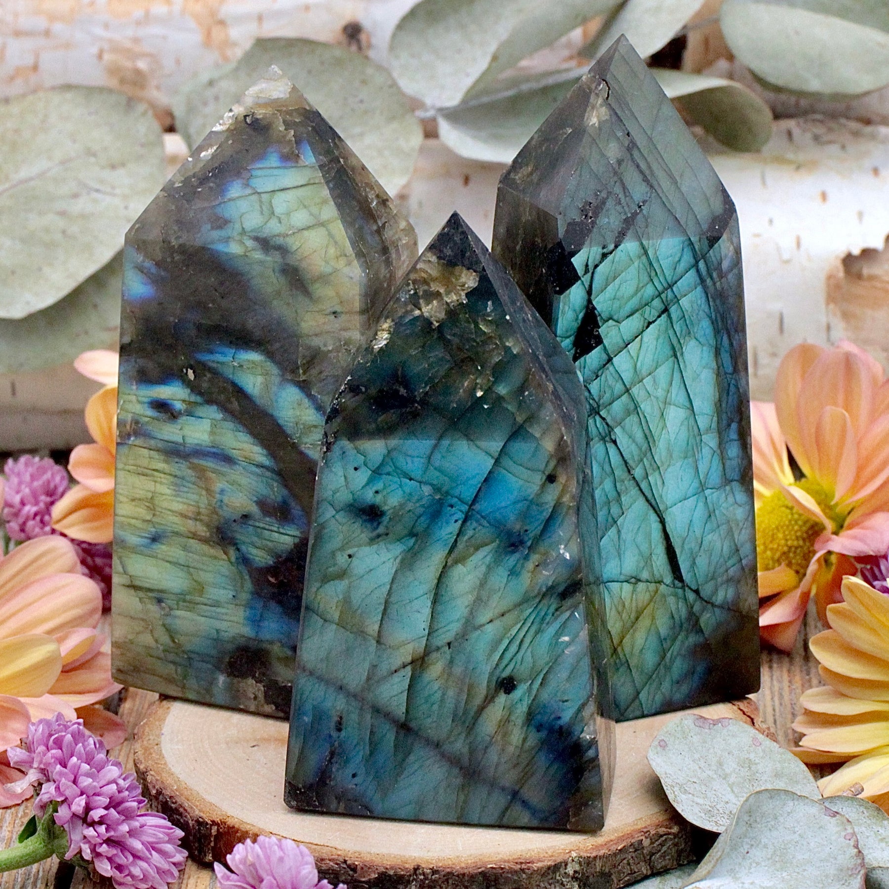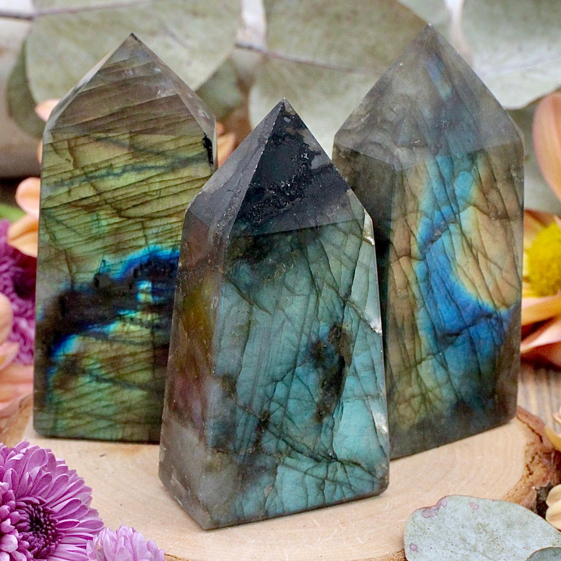 Explore your spiritual wisdom with this Labradorite Obelisk. Its iridescence shimmers brilliantly in the light, encouraging introspection to discover your inner light.