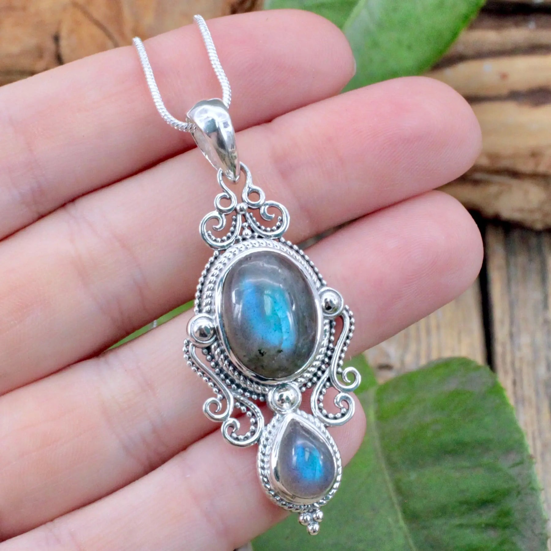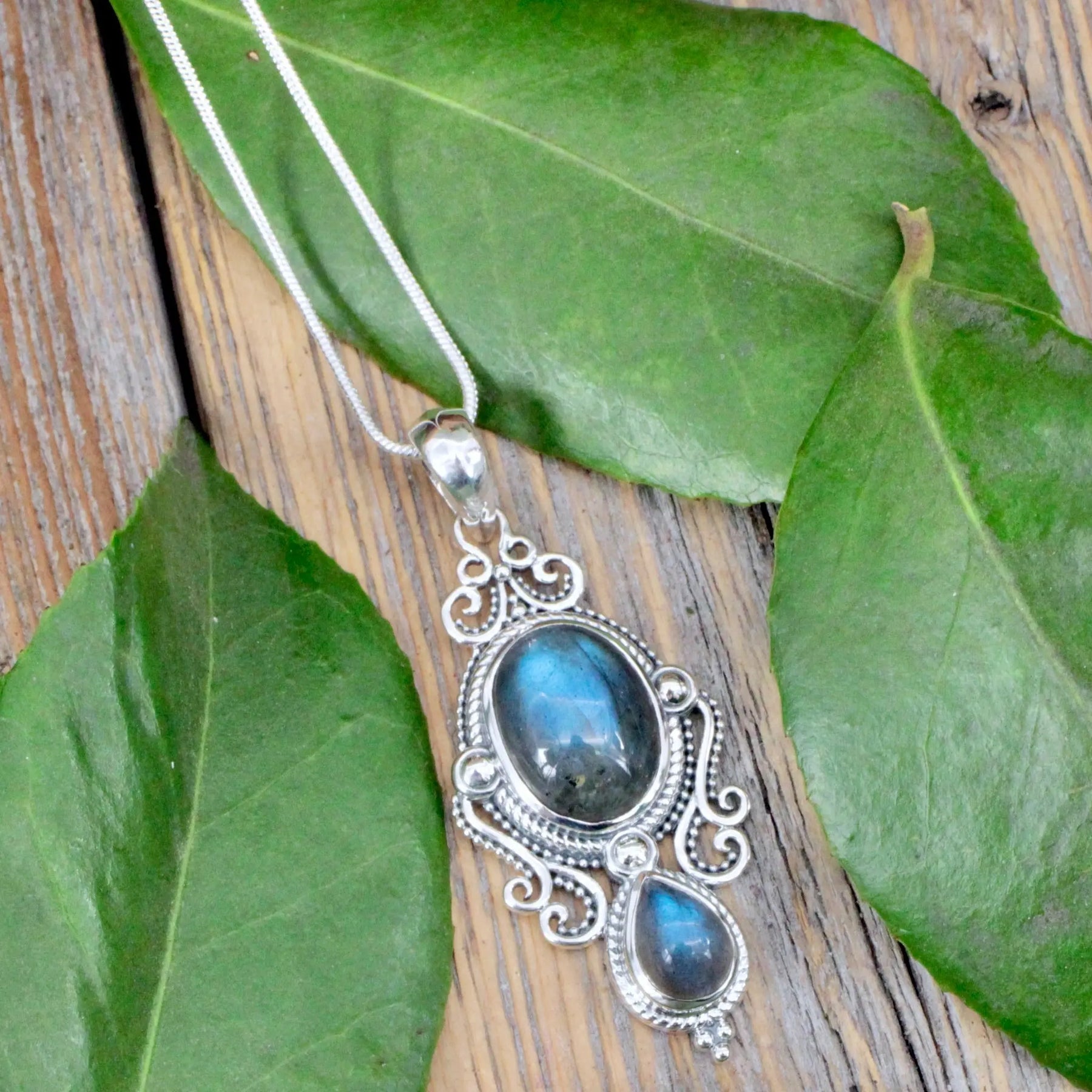 Labradorite Pendant with Silverwork- Sterling Silver