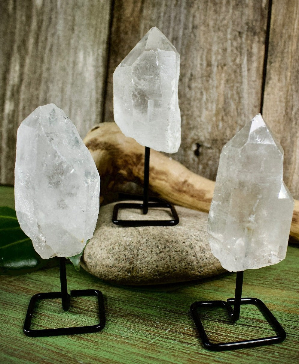 Amplify positive energy with a Quartz Crystal Mini Pin. Mini pins are a great, and affordable way to start or build your crystal collection! They come with little metal stands, so they are ready to display.